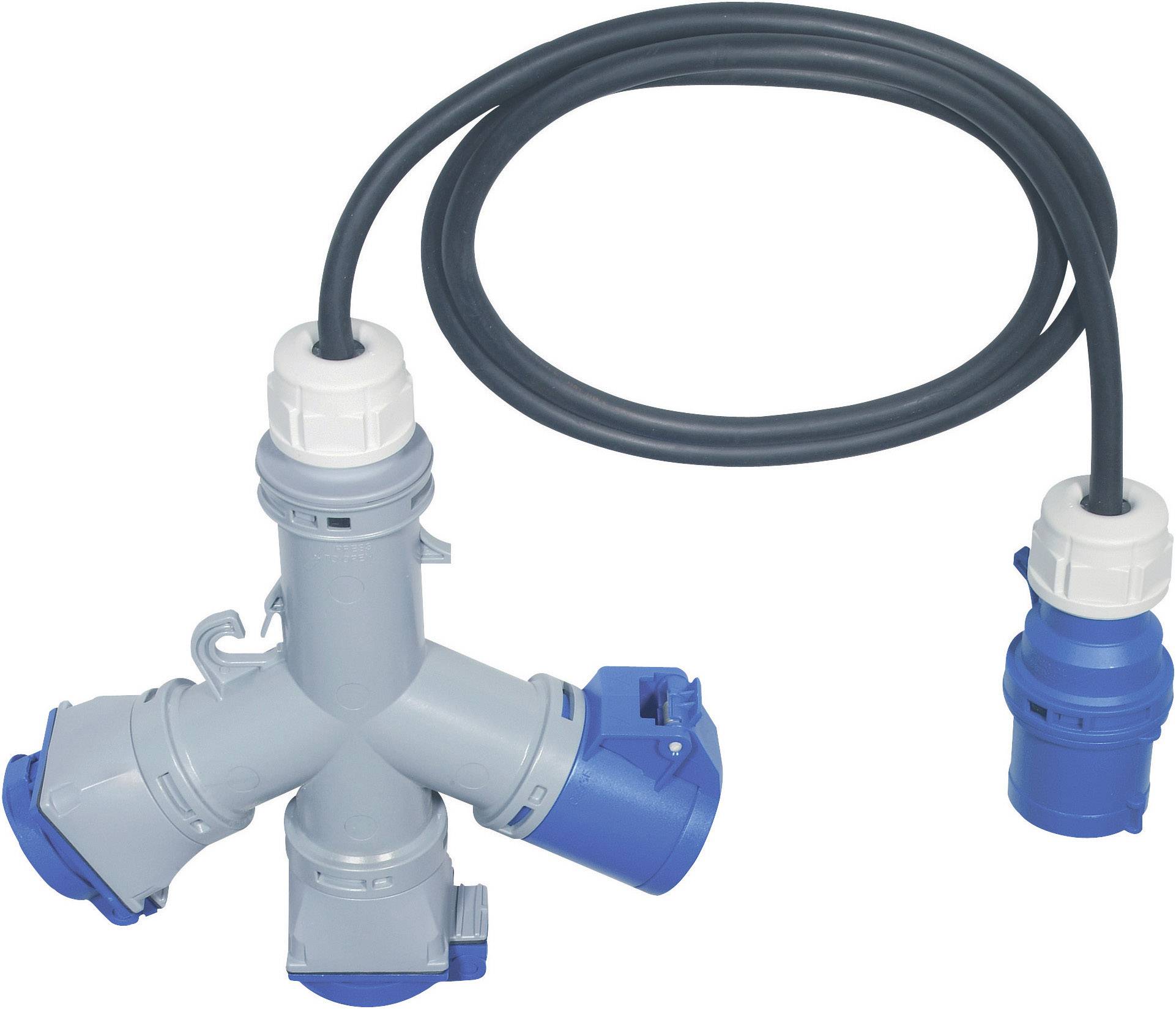 3-Wege-Adapter 1,5 m Kabel schwarz mit 2x Schutzkontaktsteckdosen und 1x CEE-Cara-Kupplung. 1 CEE-Cara-Stecker eingangsseitig.