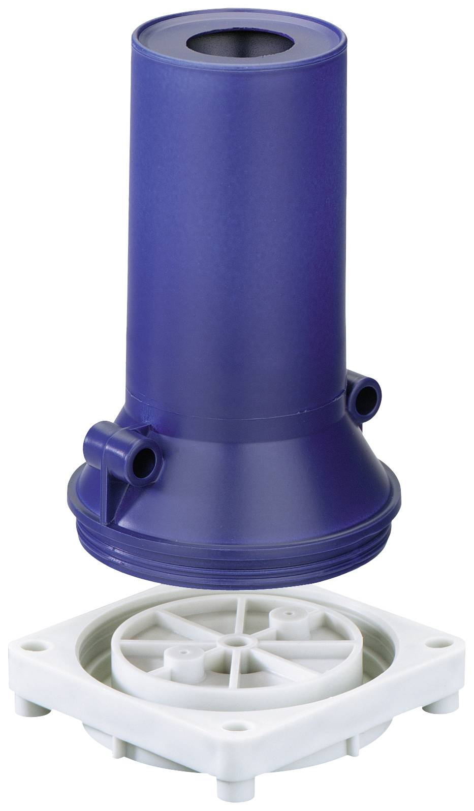 Konustrichter für Betoneinbau, für Wand-Wand-Verbindungen oder Wand-Deckenübergänge im Großtafelbau und für Verbindungen von Steigleitungen (z. B. Telefon-TV) geeignet auch für Magnetbefestigung und Gegenschalung, 71 x 71 x 112mm, Loch 37mm, für Rohrtyp M40