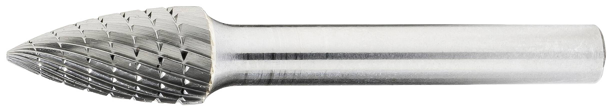 Anwendung: Universeller Einsatz in der Metallbearbeitung auf fast allen Werkstoffen. Entgraten, Verrunden, Anfasen, Egalisieren oder dem Bearbeiten von Konturen Hohe Standzeit und gute Zerspanungsleistung beim Einsatz auf verschiedensten Werkstoffen Frässtift, Kegelform Für handgeführte oder stationäre Antriebsmaschinen geeignet Nach DIN 8032 HAZET Anwendungstipp: Verwenden Sie möglichst hohe Drehzahlen Kontaktfläche zwischen Frässtift und Werkstück sollte 30 % des kompletten Frässtiftumfangs nie überschreiten Frässtift mit 6 mm Schaft Arbeitslänge: ca. 19 mm (Zylinder- und Kegelform)