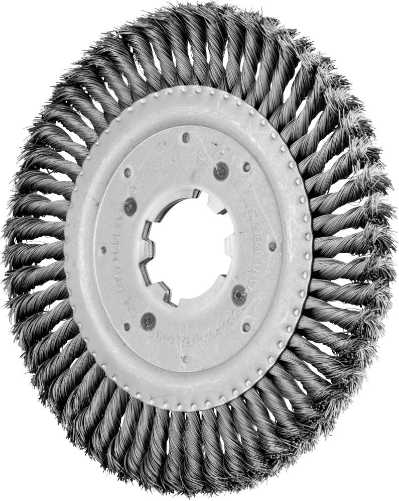 Brosse robuste et résistante qui résiste à une charge mécanique élevée. Pour tous les travaux de brossage lourds en utilisation stationnaire et automatisée, par ex. B. Travaux d'ébavurage, adaptés.Types d'entraînement :- Machines stationnairesApplications :- Ébavurage- Nettoyage- Décharge- Dérouille- Décapage- Enlever les couches d'oxyde- Usinage de soudure- Usinage de soudure d'angle- Usinage de la couture de la racineMatériau :- Fonte- Bois- Acier, acier mouléAvantages du produit:Effet de brosse agressif grâce à la rigidité élevée des fils torsadés.- Utilisation possible sur toutes les machines d'entraînement fixes et les boucs abrasifs disponibles dans le commerce grâce à un diamètre de perçage variable.