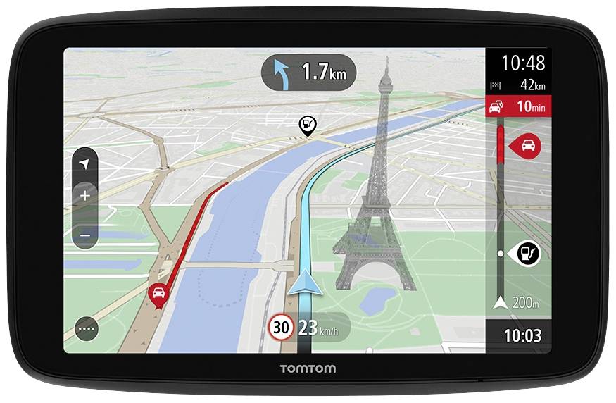 Grand écran interactif de 6 pouces vous obtenez des instructions claires sur le grand écran tactile lumineux de 6 pouces. TomTom Traffic* vous recevrez des notifications détaillées sur les embouteillages, les accidents et les embouteillages à venir et profiterez d'heures d'arrivée précises. L'abonnement TomTom Traffic est inclus sans frais supplémentaires. Mises à jour Wi-Fi ® simples connectez le TomTom Go Navigator à un réseau Wi-Fi pour vous assurer que votre carte est toujours à jour. Aucun câble ou ordinateur nécessaire. Savoir ce qui vient - grâce au RouteBar, le RouteBar unique de TomTom vous permet de visualiser en un coup d'œil toutes les informations importantes was. Navi personnalisez l'apparence du TomTom Go Navigator. Modifiez la couleur de la carte, la ligne de route et d'autres éléments selon vos envies - et même la lisibilité. Alertes de caméra radar * vous êtes toujours parfaitement informé des caméras radar sur votre itinéraire. Le Go Navigator comprend un an d'alertes de caméra radar.