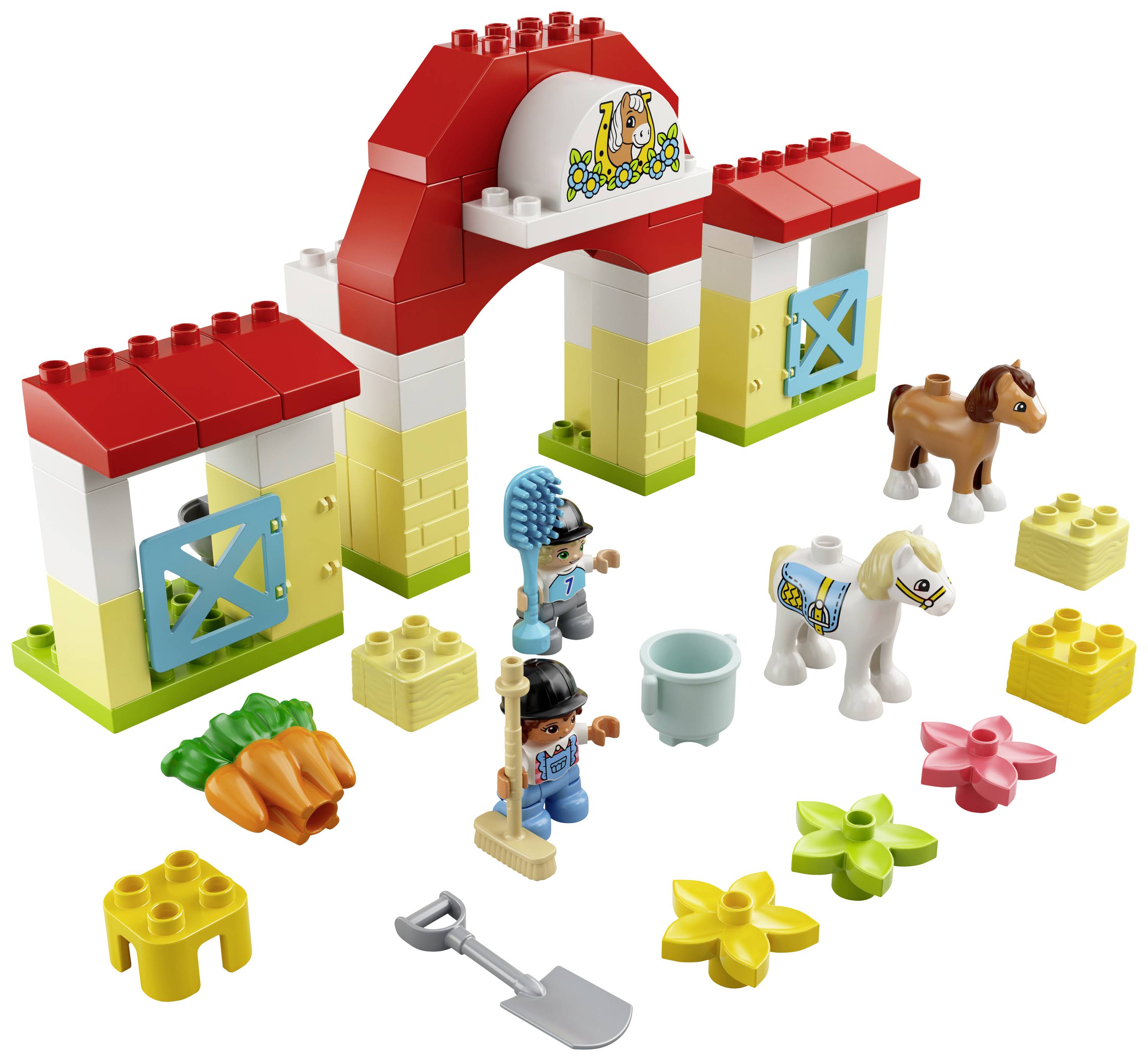 Le SET LEGO DUPLO ® « Pferdestall and Ponyguy » (10951) contient tout was dont les petits amis animaux ont besoin pour alimenter les deux poneys doux et jouer de nombreuses heures de fantaisie. L'écurie pour jouer et apprendre dans la écurie est toujours beaucoup de choses à faire. Les 2 poneys mignon doivent être nourris et brossées devant le foyer. Avant de dormir, il faut également faire la paille. Lors de l'alimentation des poneys, les petits amateurs d'animaux développent des compétences moteurs et des compétences sociales-émotionnelles. Les jouets conçus pour les enfants en bas âge avec les jouets LEGO Duplo apprennent à jouer. Les jeux DUPLO permettent aux parents et aux enfants en bas âge de jouer ensemble et de vivre ensemble des étapes importantes du développement.