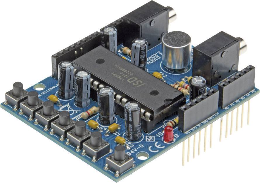 Enregistrement vocal via microphone intégré ou entrée ligne. Démarrez la lecture, l'enregistrement, etc. À l'aide des touches intégrées ou de l'Arduino Durée d'enregistrement 60 s et lecture via haut-parleur ou sortie ligne. Un exemple peut être téléchargé et les shields sont empilables, il est donc possible d'empiler différents shields. Utilise la broche 10 comme Chip Select sur l'Arduino Uno et les broches ICSP comme connexion série avec le Shield sur l'Arduino pour libérer les broches E/S.