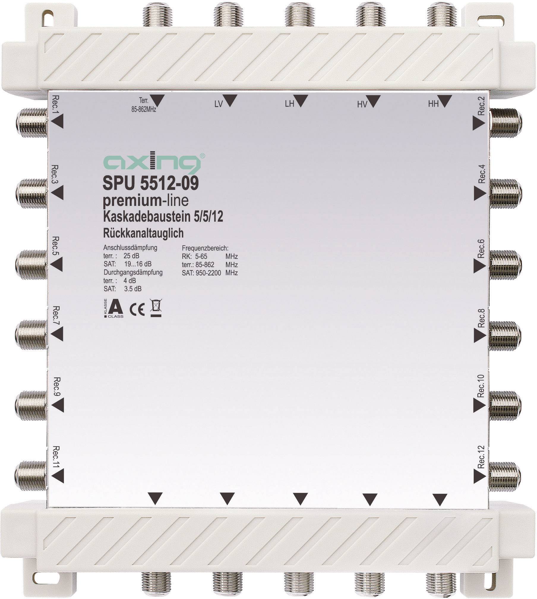 With cascading modules, you can distribute 4 SAT-ZF polarization levels including terrestrial signals (suchas FM radio) on several SAT receivers. SPU 556-09 = 6 Receivers, SPU 558-09 = 8 Receivers, SPU 5512-09 = 12 Receivers and SPU 5518-09 = 18 Receivers. For a cascading system with cascading modules SPU 556-09, SPU 558-09, SPU 5512-09 or SPU 5518-09, you need one of the polarity switch SPU 56-09, 510-09 and 516-09. Follow operating instructions with start up of the polarity reversing switch.