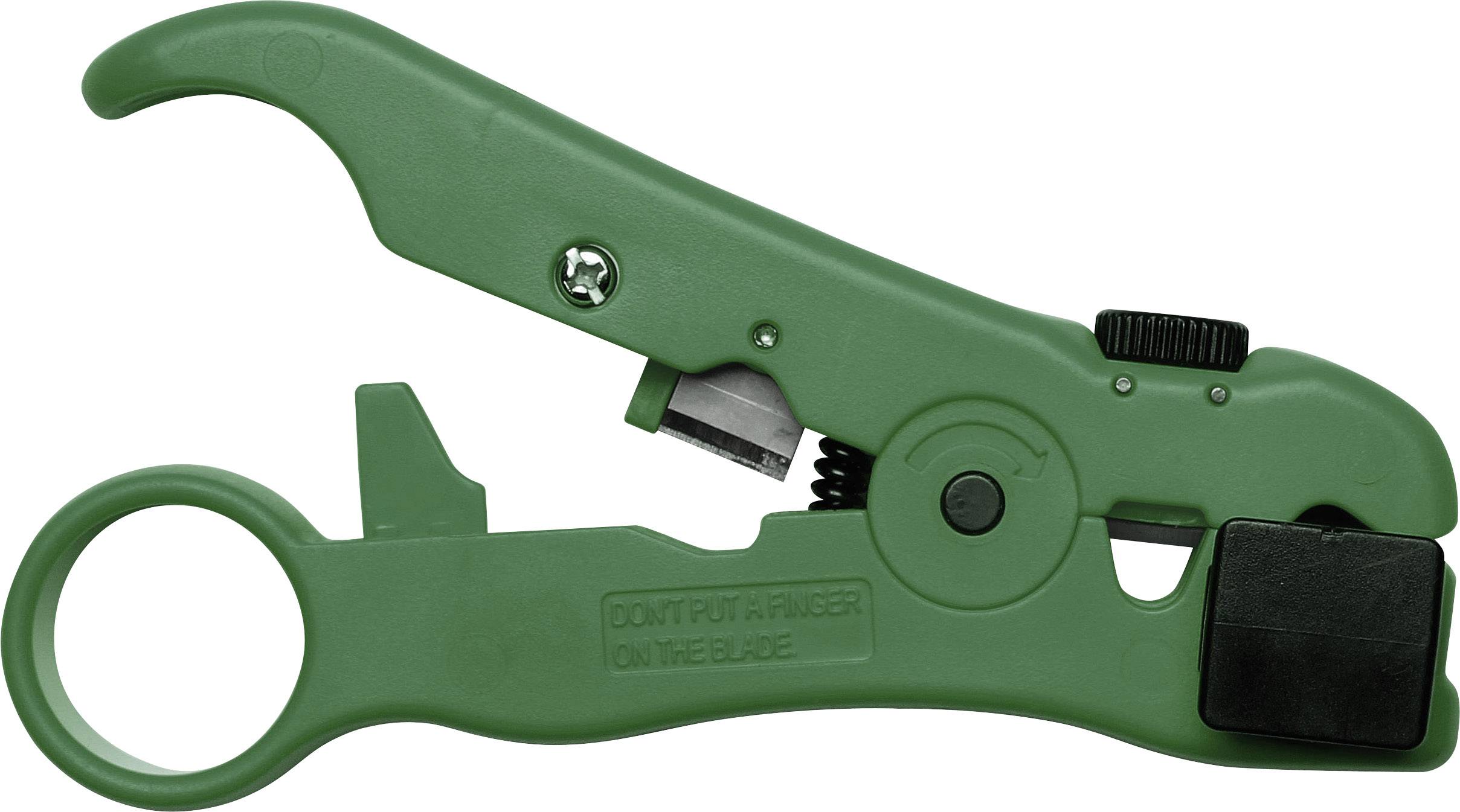 Mit umsteckbarem Abisolierblock, Abisoliermesser und Schneidemesser für Koax-Kabel.