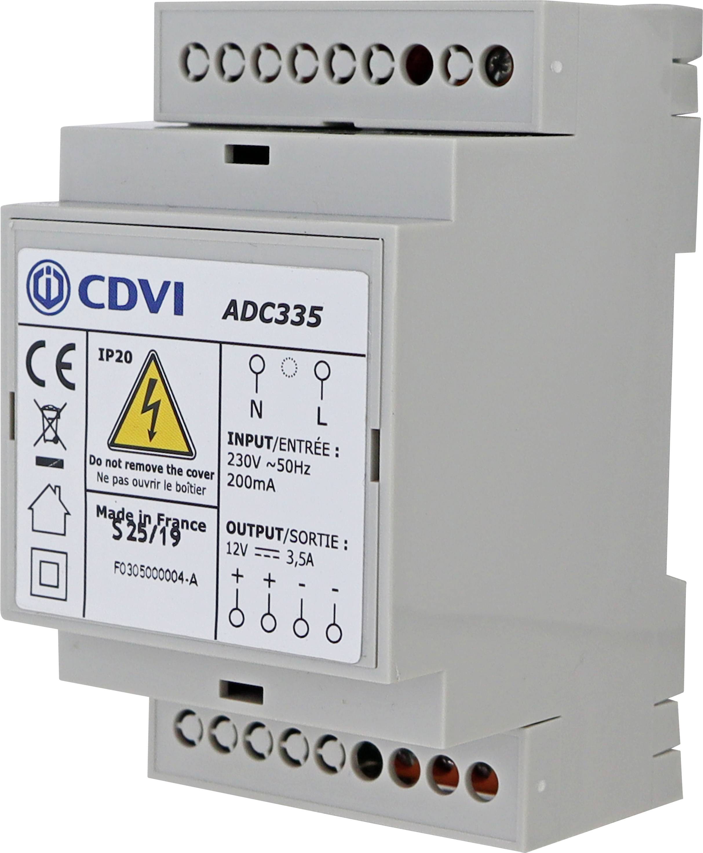 Le bloc d'alimentation ADC335 est un bloc d'alimentation linéaire à réglage compact pour le montage sur rail DIN. Avec la largeur de 3 modules, il est très compact mais robuste en même temps. L'ADC335 est un bloc d'alimentation 12 V, 3,5 A.