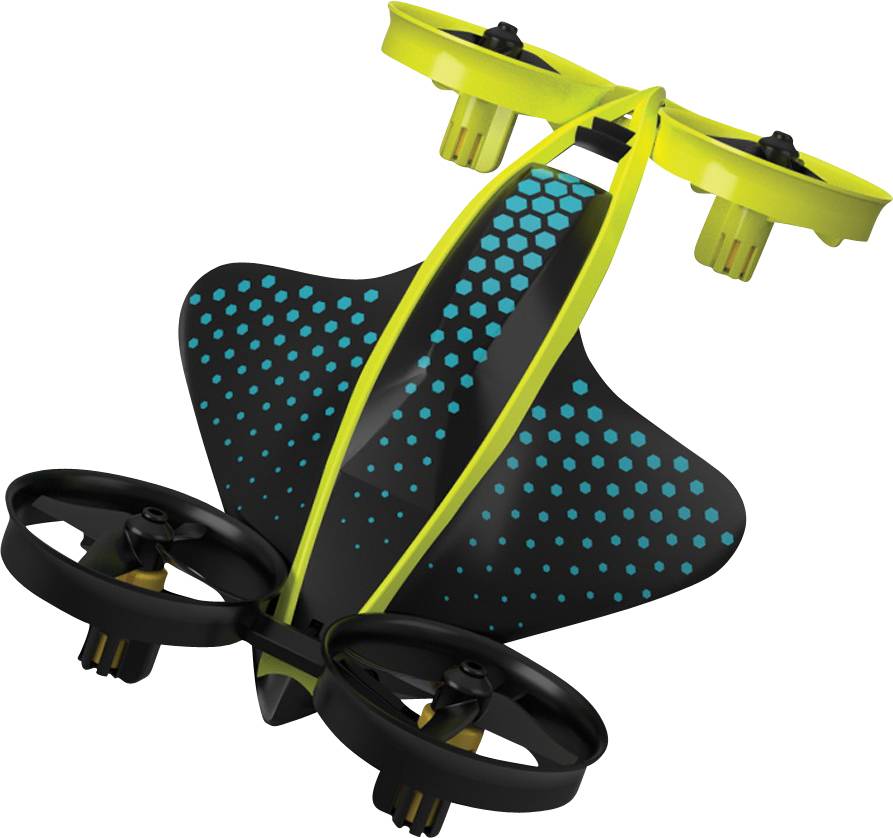 Its name is Quad-HydraQuadHydraQuad is the first 3-in-1 hybrid stunt drone to conquer water, land and air! The team of developers put great emphasis on simple operation: Ultra-light and aerodynamic design enables this unique flying device to provide adventurous stunts even for beginners with just one push of a button. The HydraQuad skates over the ground to take off directly into the air and perform flight maneuvers such as hovering, looping and screws within a radius of more than 45 meters. And even in the water, this all-round flying artist feels at home, dives and dives - and then starts straight again at airy heights with no effort.Technology that makes a differenceThe stunt drone is suitable for outdoor as well as indoor use. The flight time is up to 4 minutes, with a flash light on the HydraQuad indicating decreasing battery power, and after 75 minutes charging time, the drone can lift again. HydraQuad is supplied with a rechargeable LiPo battery (3.7 V, 800 mAh), a USB charging cable and a 2.4 GHz controller. Suitable from 14 years and above.
