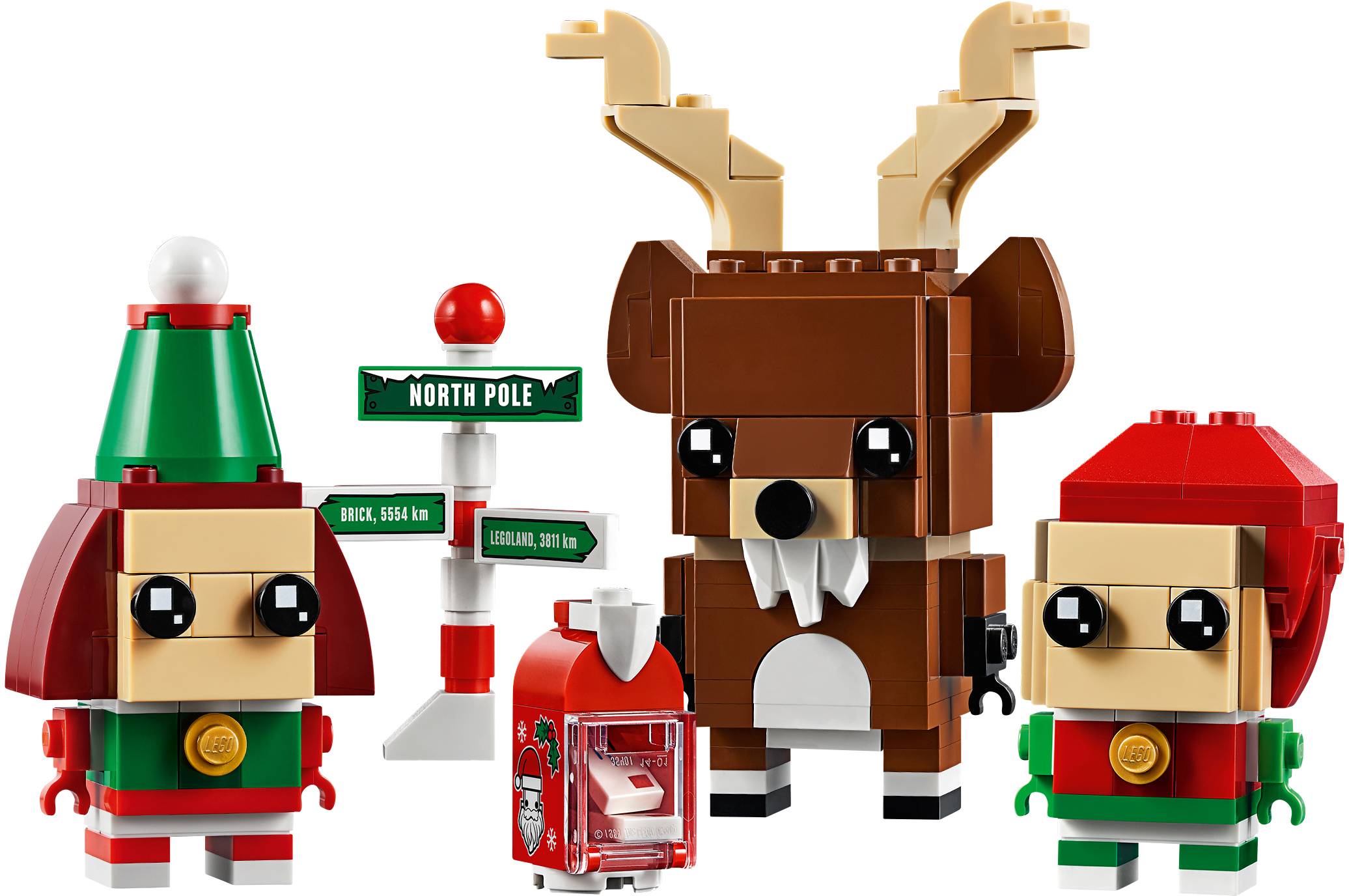 Enthält LEGO® BrickHeadz™ Rentier- und Elfenfiguren auf LEGO Grundplatten.